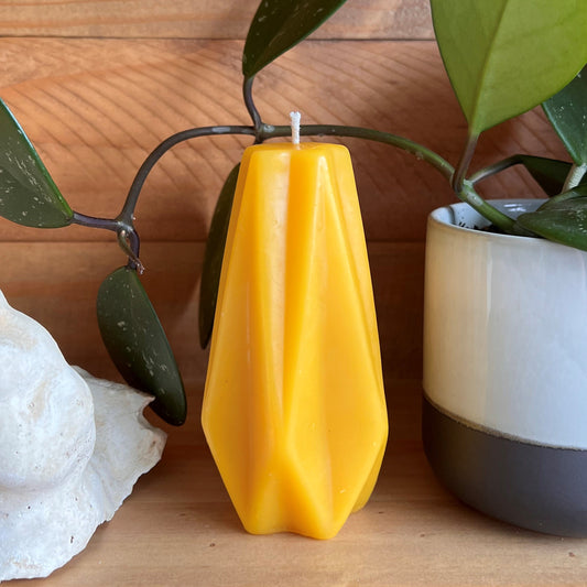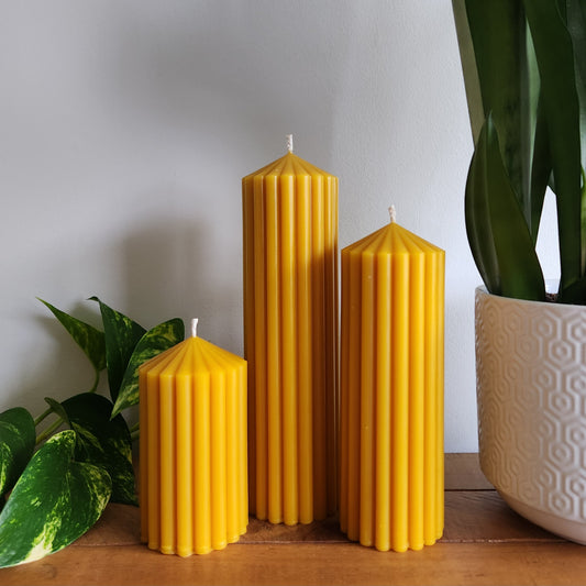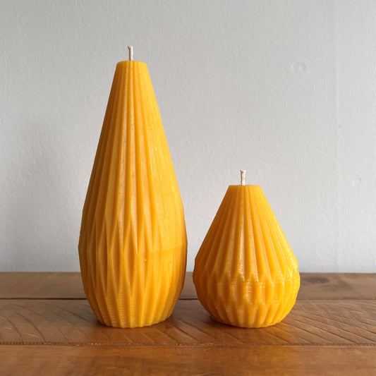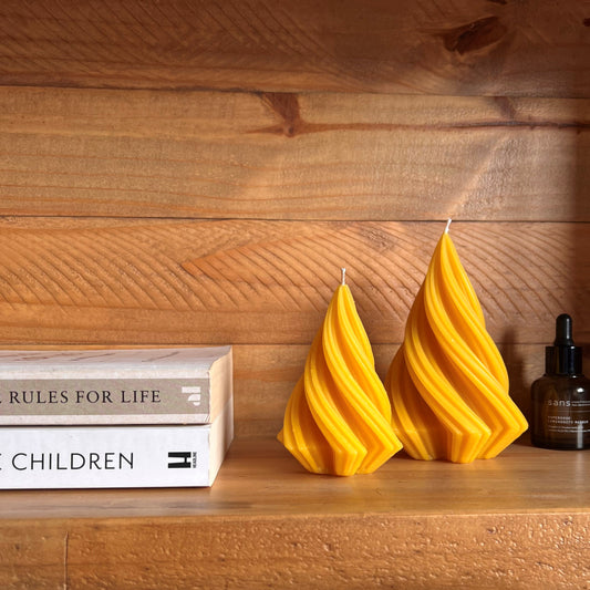Pure beeswax candles, coloured and scented by our bees. Each candle is hand poured, making each one unique.