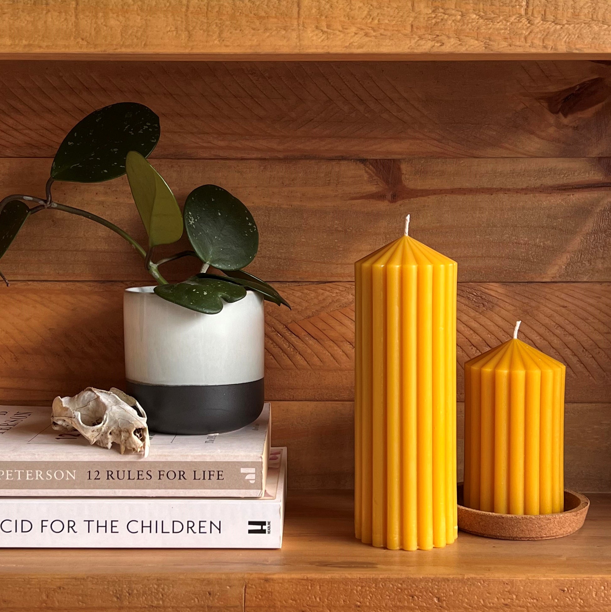 Our candles are made with 100% natural beeswax, coloured and scented by our bees. Each candle is hand poured meaning no two are exactly the same.