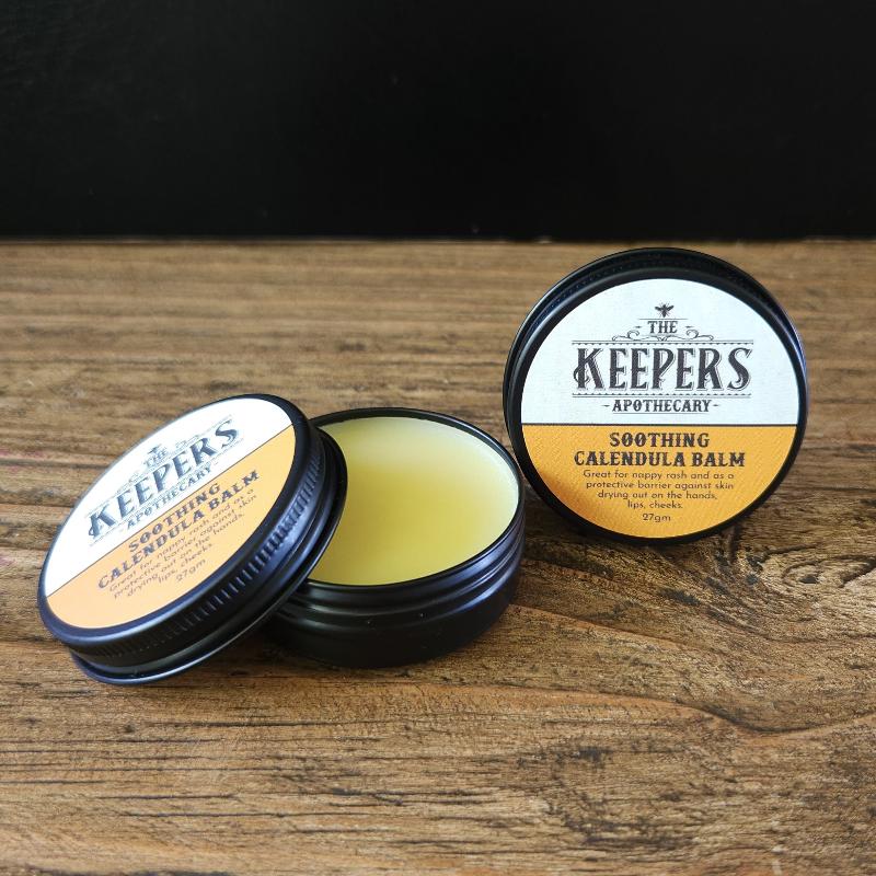 Soothing Calendula Balm. Great for nappy rash and as a protective barrier against skin drying out on the hands, lips and cheeks.